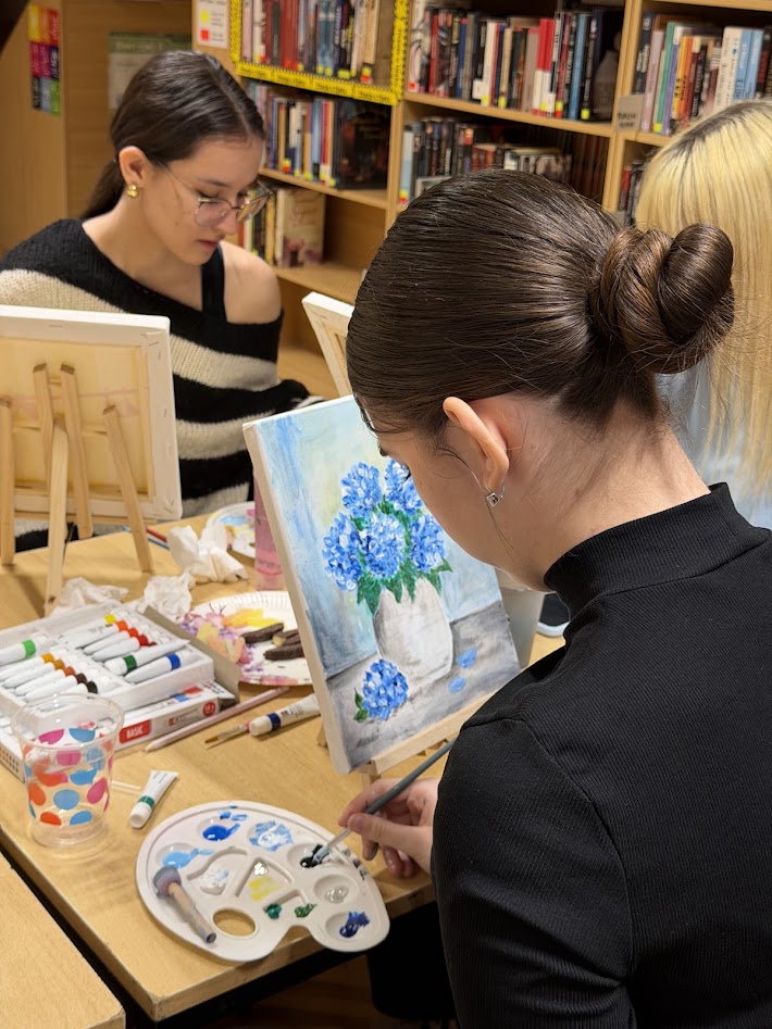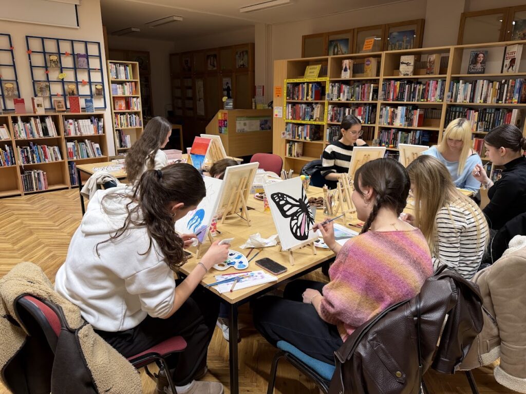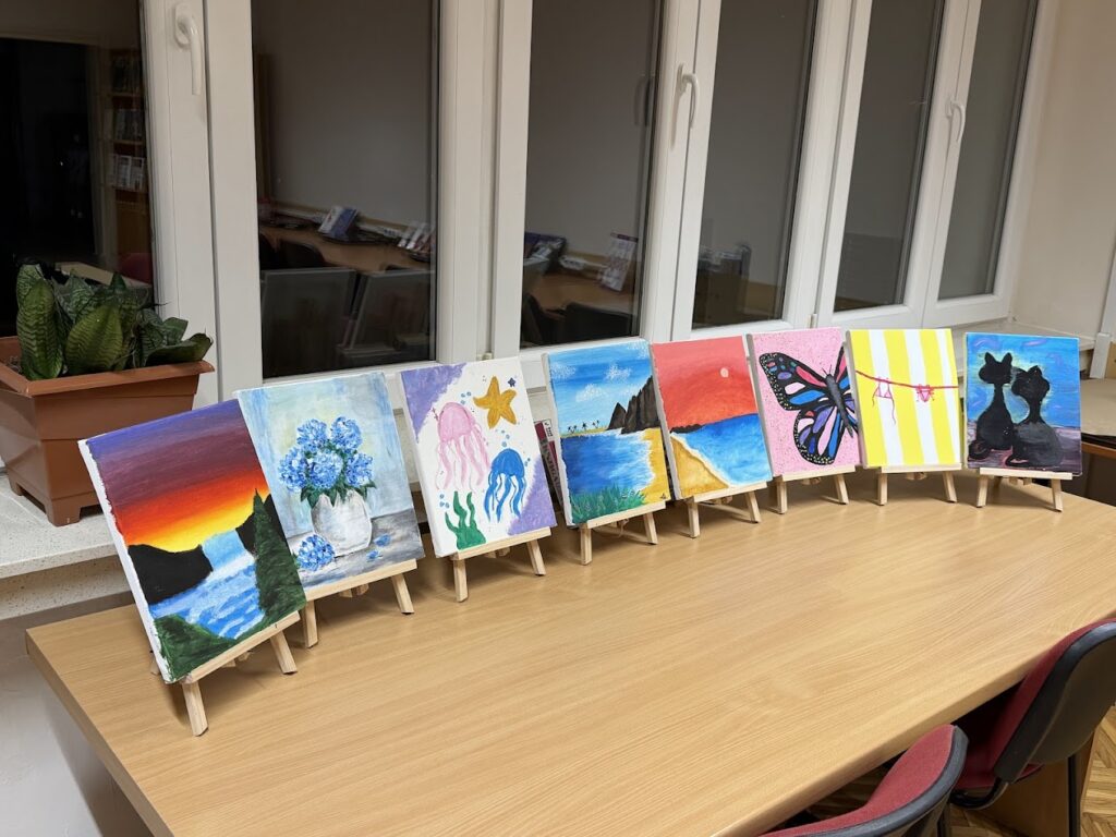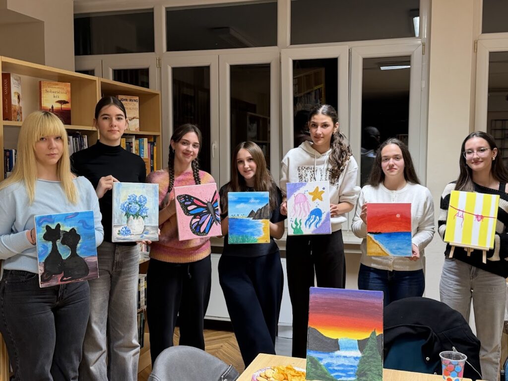 U petak, 6.3.2026., Kreativna skupina obilježila je Dan žena uz ugodno druženje, toplu šalicu čaja i boje na platnu. Ova opuštajuća aktivnost potječe iz američkog “Paint & Sip” koncepta, gdje ljudi kombiniraju druženje i kreativno izražavanje dok uživaju u omiljenom napitku.